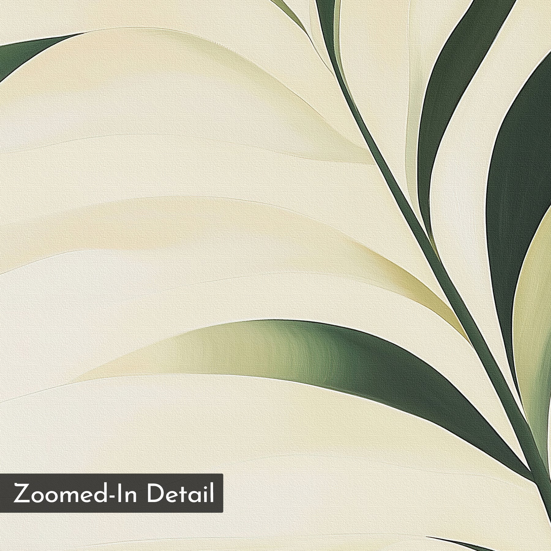 Spring Foliage Canvas Art features a plant with long green leaves on a light beige background. Framed in thin wood, this minimalist botanical wall art is perfect for modern interiors with its soft lines and gentle color transitions.
