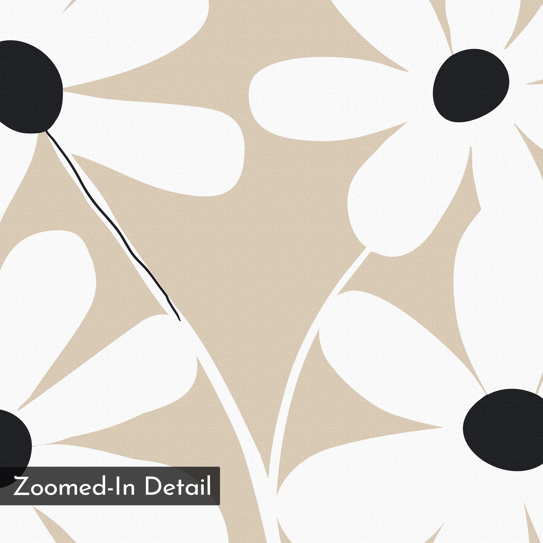 White Blooms' by Nordic Park is a playful floral wall art print featuring bold white petals and black centers set against a neutral taupe background. This modern botanical piece brings a cheerful and graphic touch to any space, perfect for brightening up a living room, bedroom, or hallway.