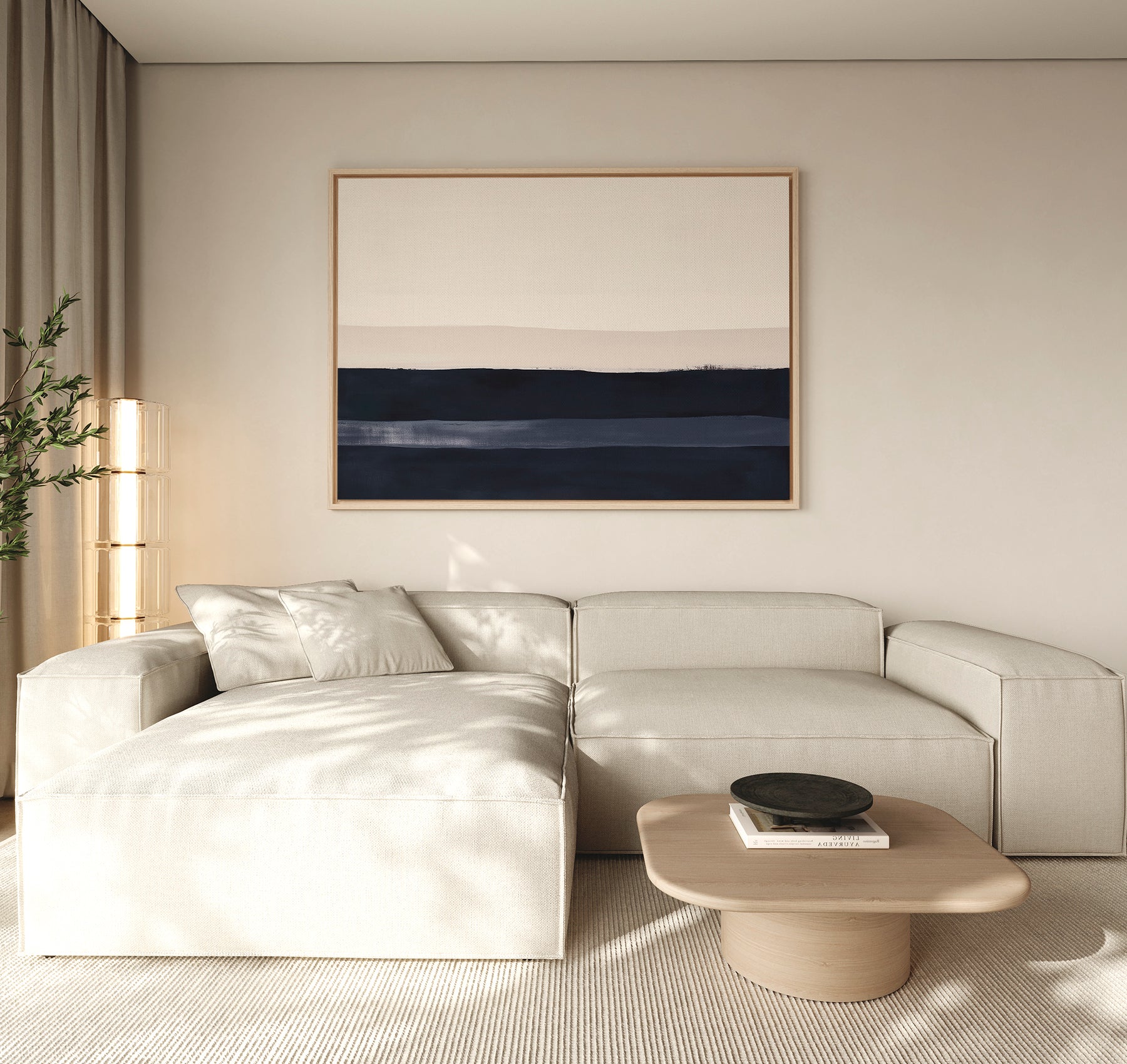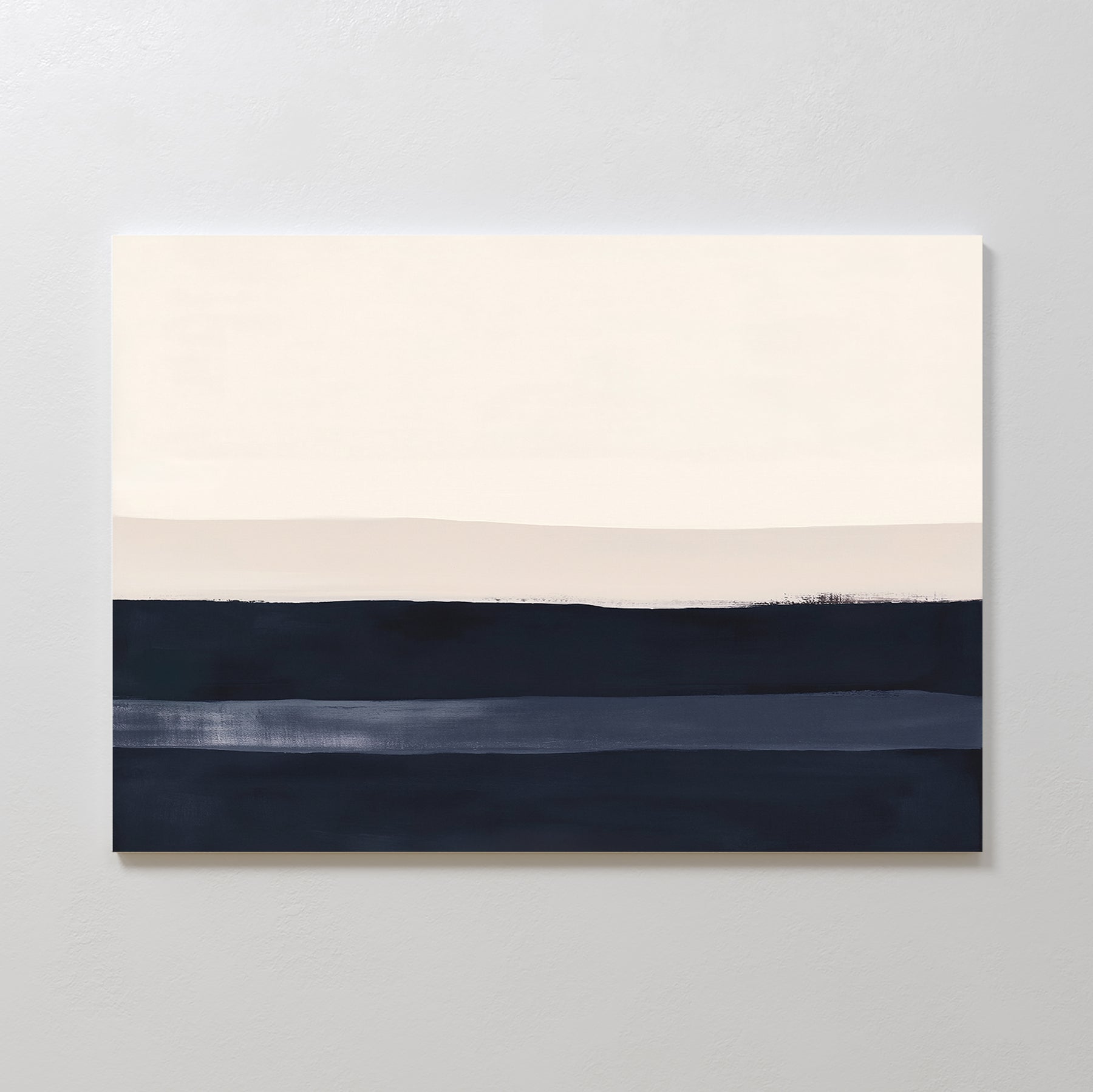 Ivory Dusk - Horizontal by Nordic Park is a bold wall art print that balances dark navy tones with soft beige and ivory layers. Its minimalist wall art design brings depth and structure to modern interiors, making it an ideal choice for living room decor, bedroom decor, or as a large wall art centerpiece.