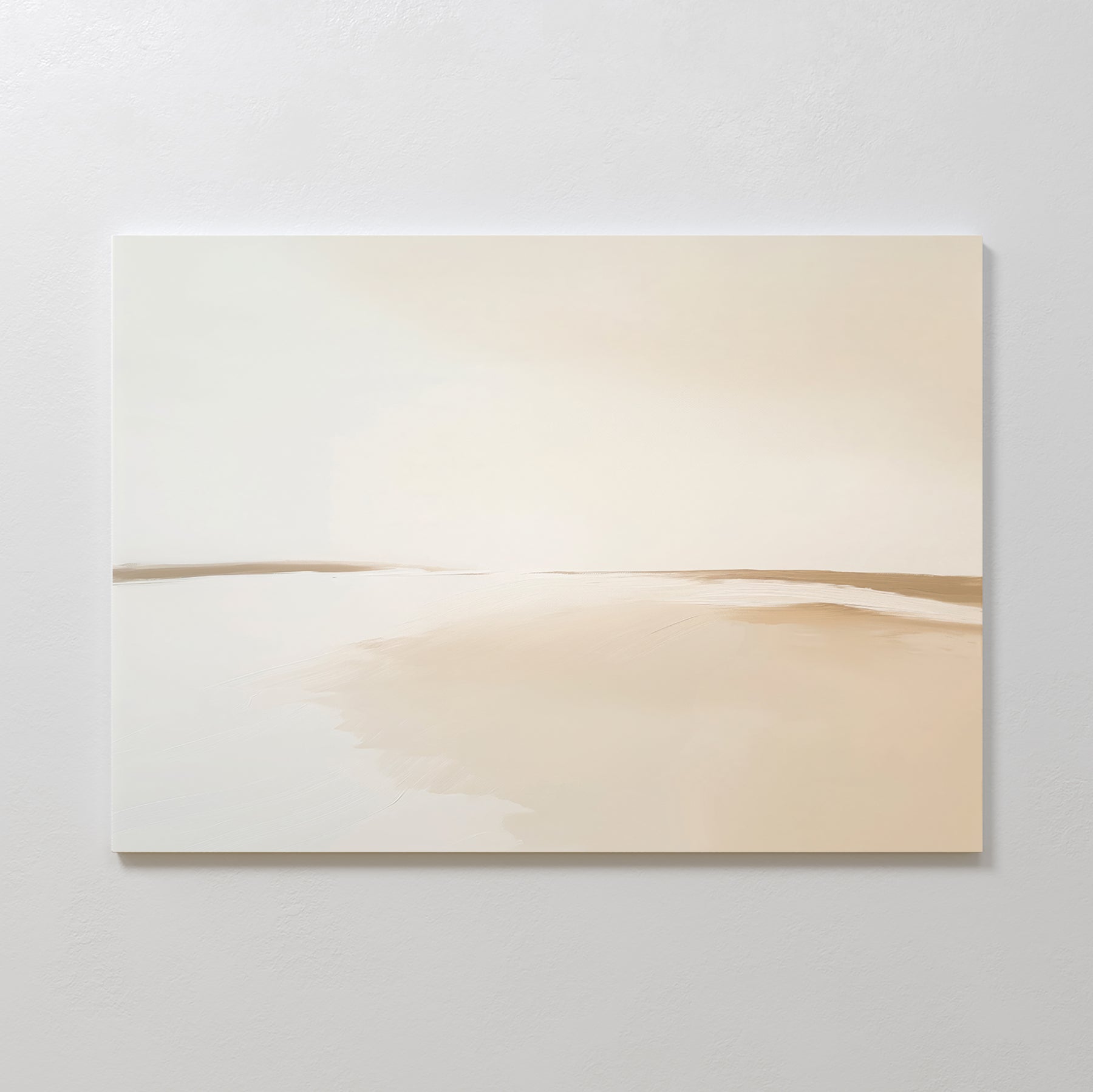 Serene Expanse Canvas Art – Horizontal features a minimalist, sandy landscape in soft beige and cream. This abstract wall art evokes tranquility, ideal for modern living rooms or as peaceful decor in any space.