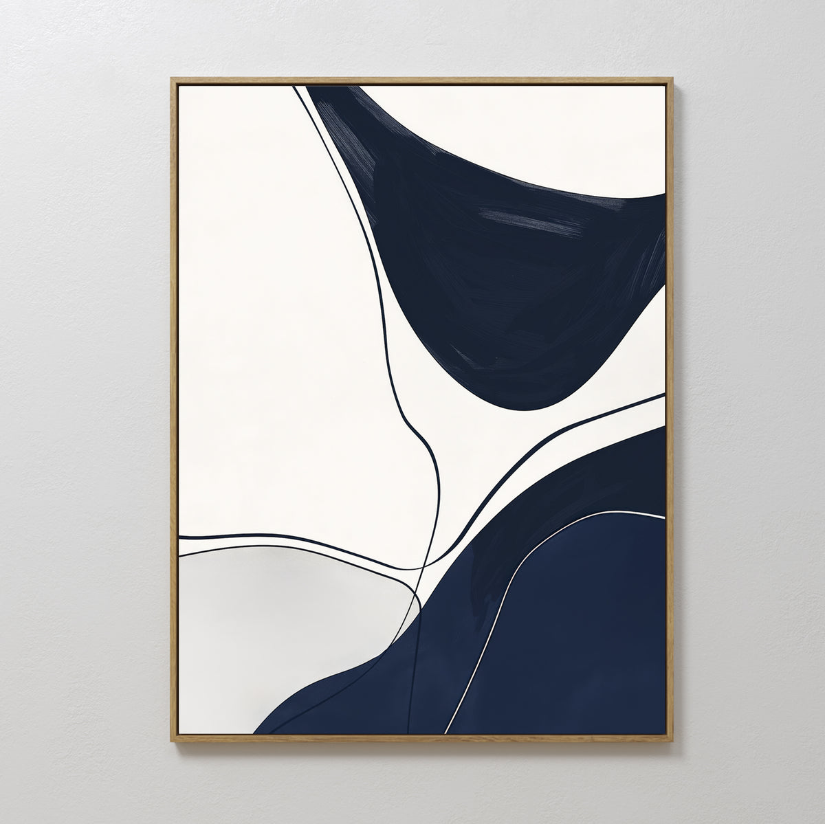 Transform your space with 'Curved Lines' by Nordic Park, a striking wall art print featuring bold navy and white curves. This minimalist wall art piece is perfect for living room decor or bedroom decor, adding a touch of modern sophistication to any room.