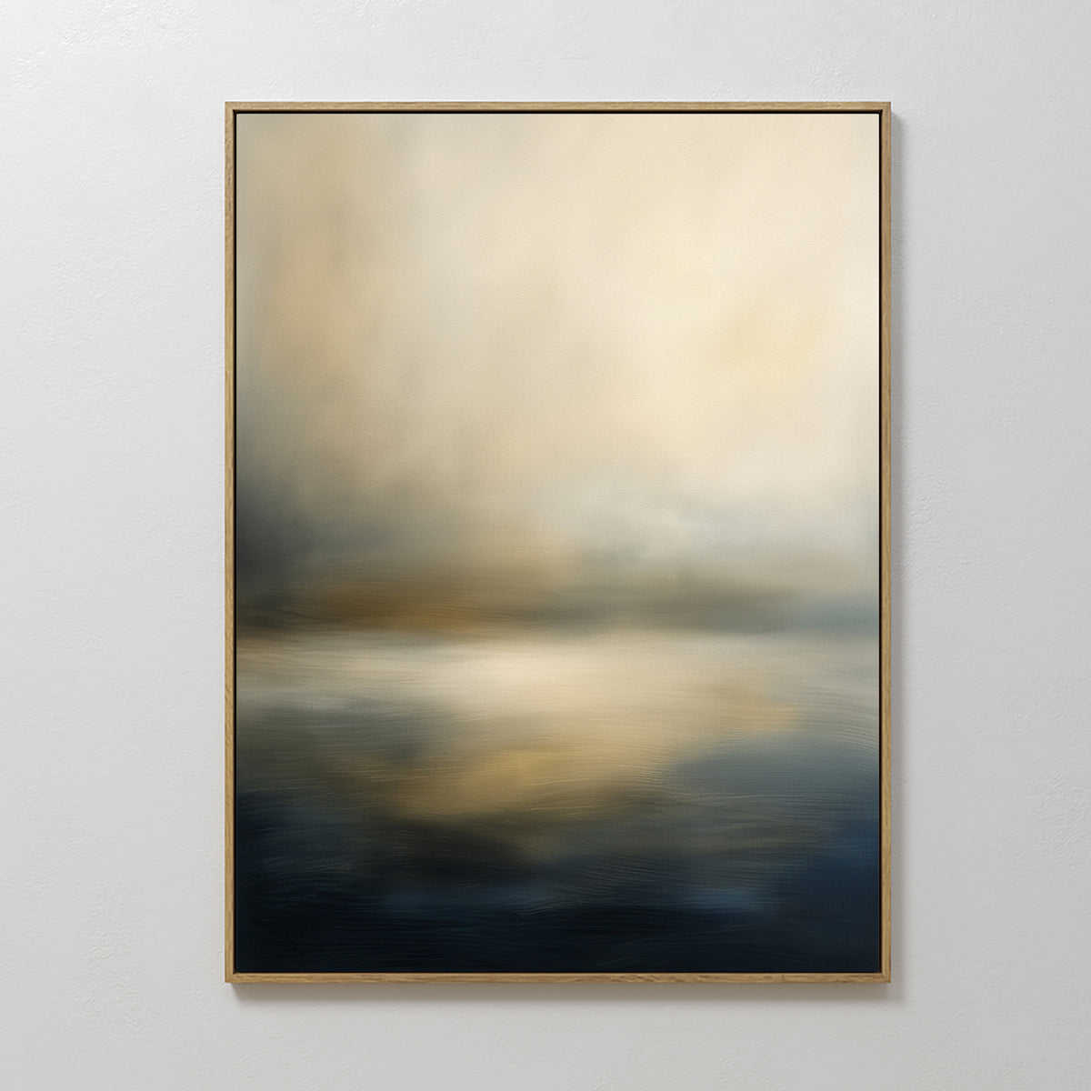 Foggy Bay Impressions is a captivating abstract print defined by a soft, blurry horizon that evokes the quiet atmosphere of misty waters. Warm sand, ivory, and soft taupe tones blend with muted olive and deep slate blue accents, creating a calm and atmospheric palette. This refined wall art by Nordic Park adds serene elegance to living rooms or bedrooms.