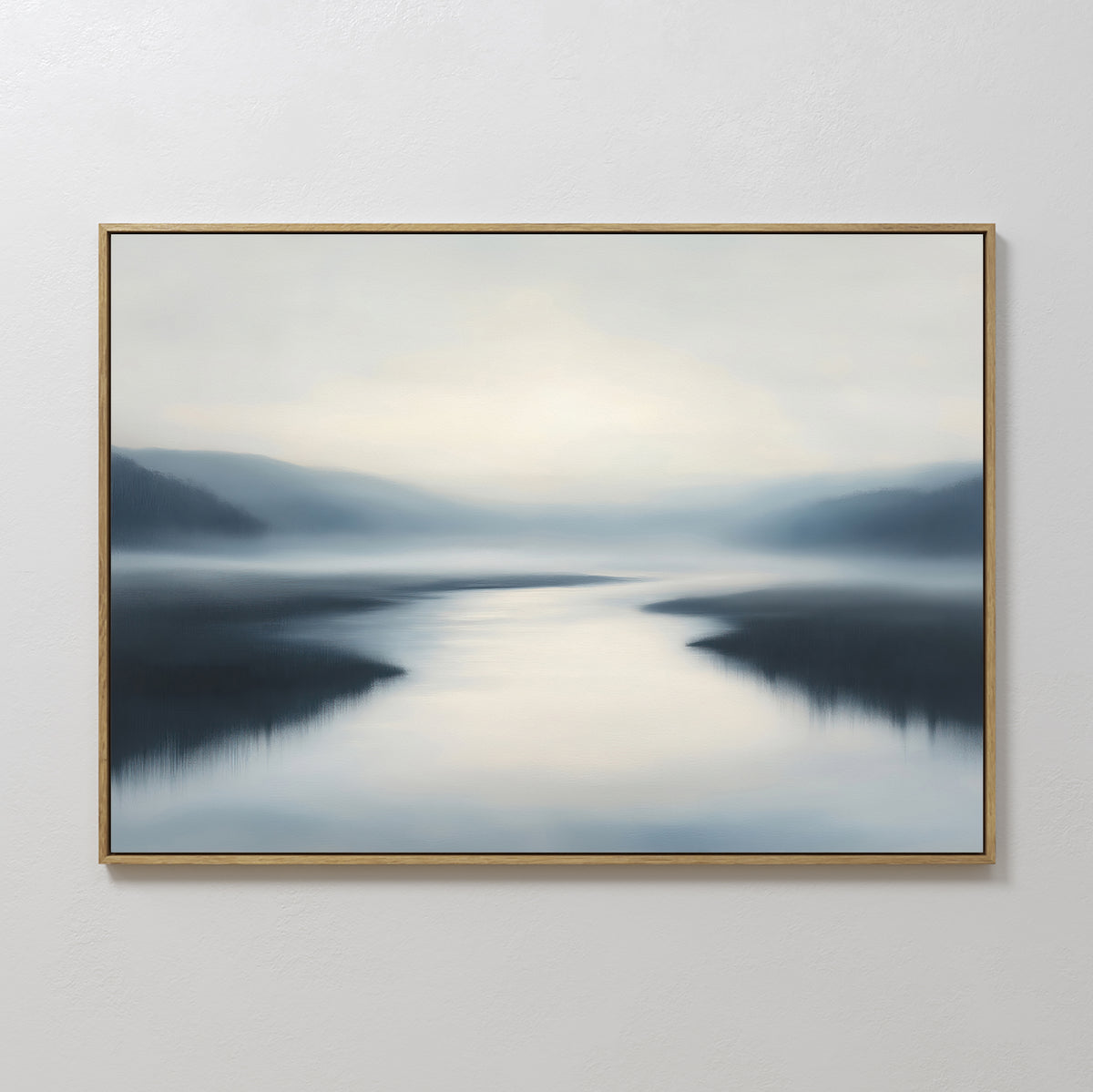 Bring serenity to your space with the Peaceful Waters - Horizontal by Nordic Park. These calming landscape wall art prints feature soft gradients of blue, gray, and white, evoking misty lakes and still reflections—ideal for tranquil living room or bedroom decor.