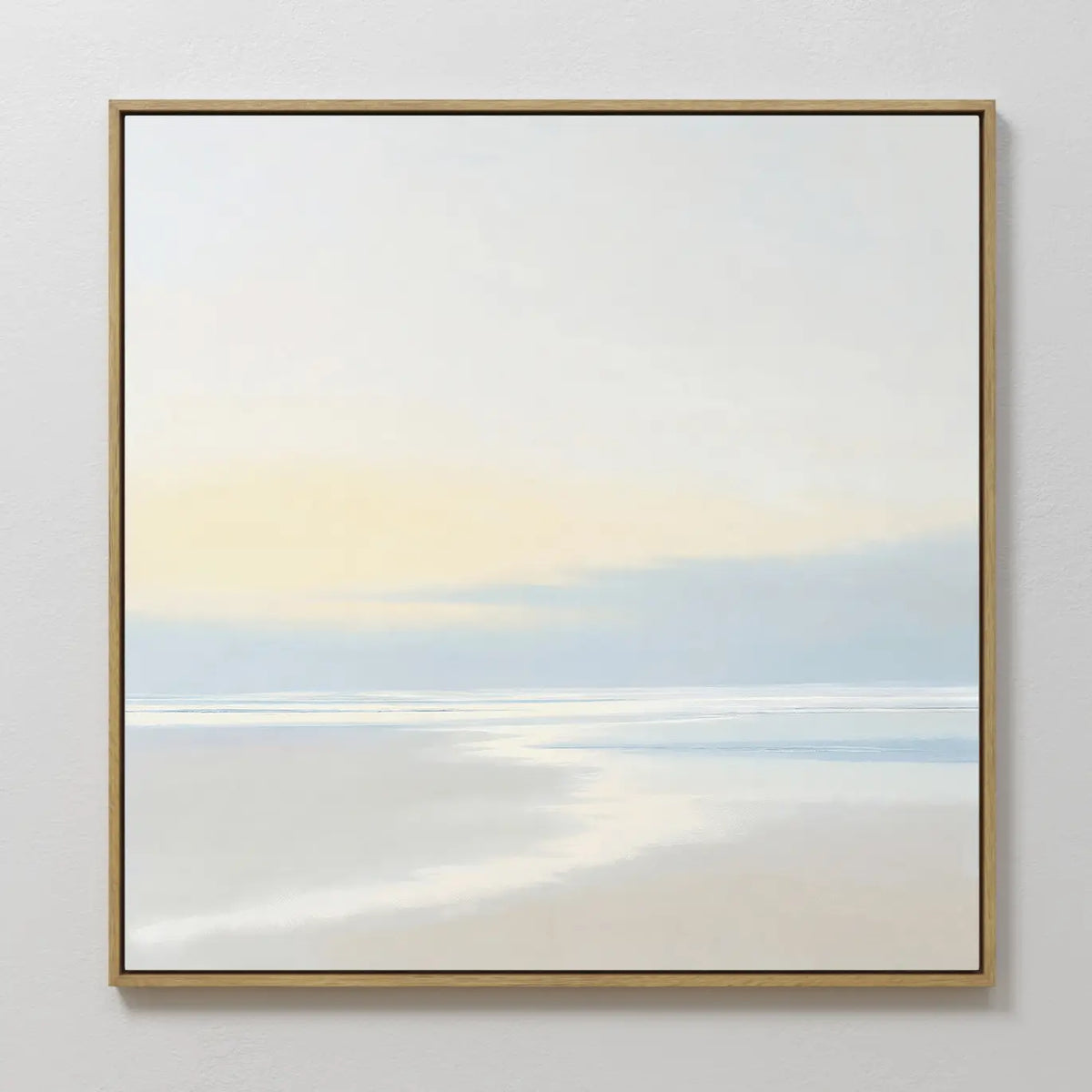 Discover ‘Quiet Shores’ by Nordic Park, a tranquil wall art print in soft blue, sand, and white tones. This minimalist canvas brings coastal calm to living room or bedroom decor with its gentle seascape and serene horizon.